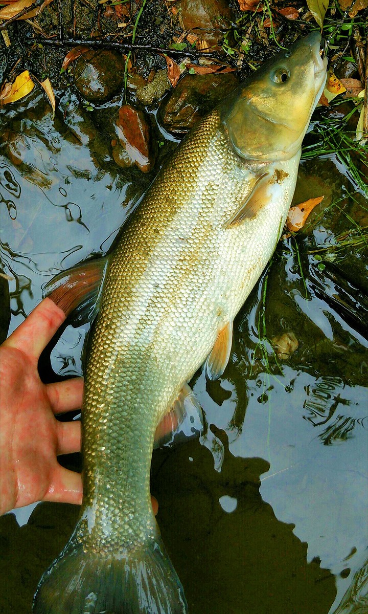 河川規模に似合わない良型ウグイが連発します。35センチ以上ありそうな巨体です。