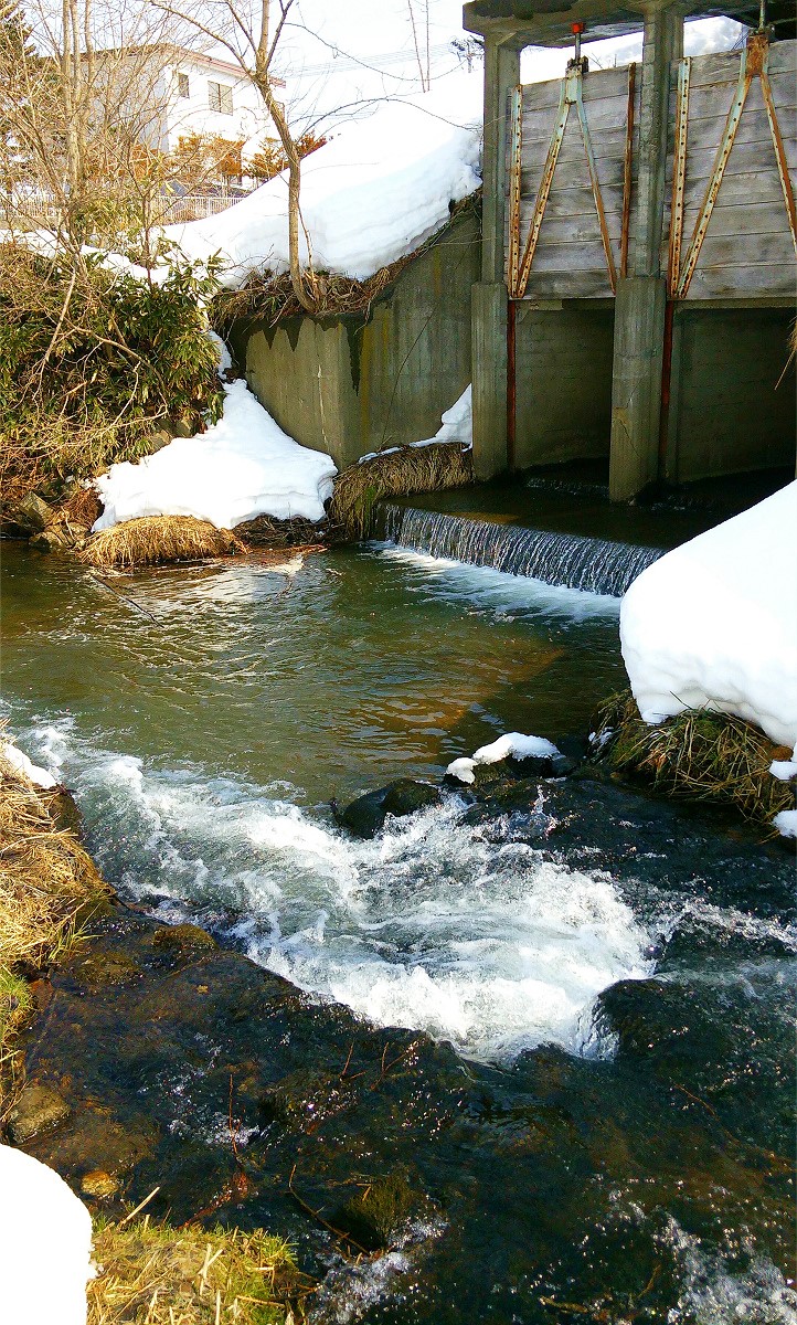 上流は人工の滝と急流が延々と続いています。しかしいくら釣り上がってもアタリが全くないので、もう釣りと言うより沢登りです。しかも川底はヌメヌメして滑りやすく、護岸も高いので川から出る事ができません。これほど遡行が辛い川は初めてです。それでも滝をよじ登っていくと、