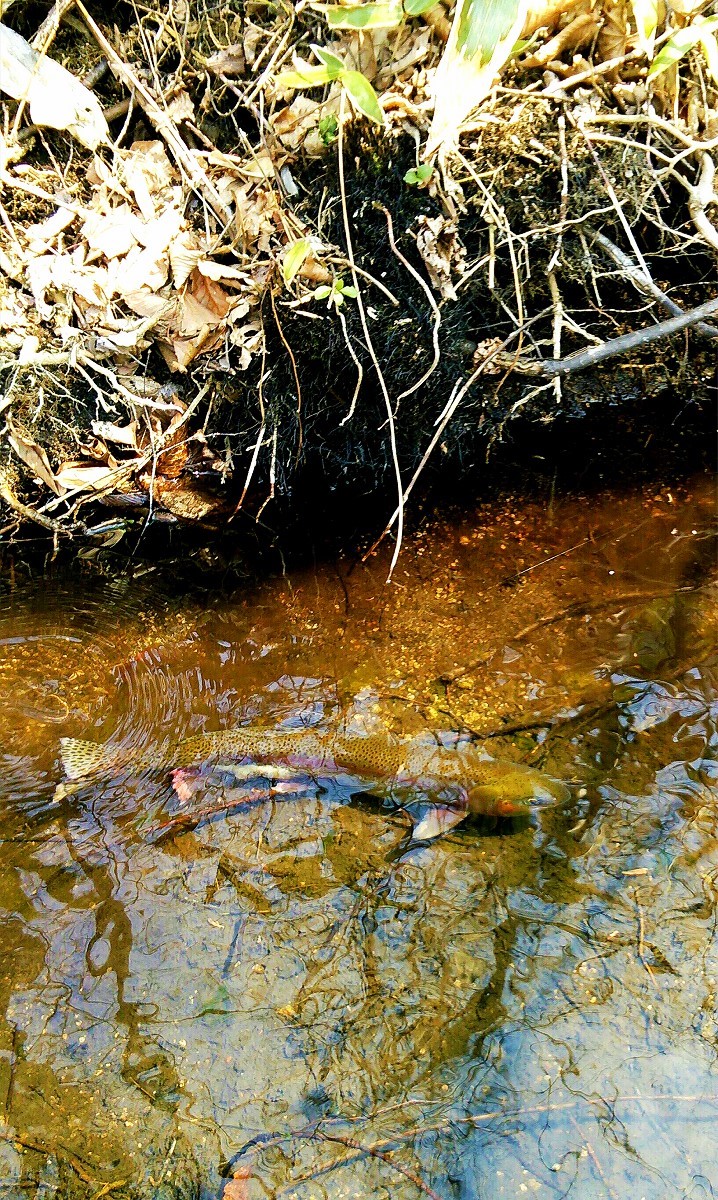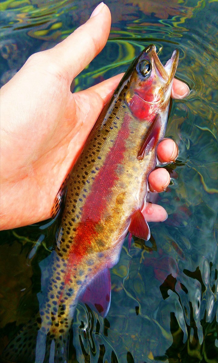 24センチのニジマスがヒット。奇跡的です。やはり滝に挟まれた区間で生息しているため一度逃げても他に深場もなく、同じ場所に戻ってくるようです。今日はこれで満足して帰宅しました。それにしても魚の往来を阻む滝が無数に存在するにもかかわらず魚影があったのは驚きでした。とは言え滝に挟まれた区間の魚は釣り切ってしまえば終わりですから、是非ともリリースを心掛けて頂きたいですね。本当に大変な川でしたが、また機会があれば訪れてみようと思います。魚は全てリリースしました。