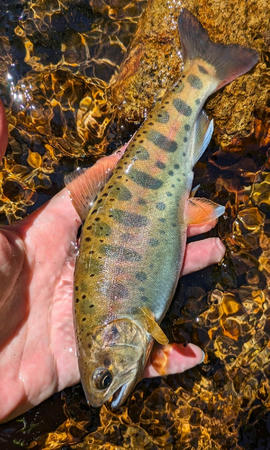 水中を撮影するとイワナとヤマメが仲良く混泳していました。左奥の比較的大きな魚影は今リリースした尺イワナでしょうか。いずれにしても極端な大物は見当たらないので、今日はここで帰宅しました。コンクリート固めの下流域を除けば環境は悪くないので、また機会があれば訪れてみようと思います。魚は全てリリースしました。