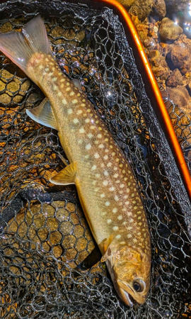 32センチの尺イワナがヒット。大場所で期待通り良型が釣れると気分が良いですね。