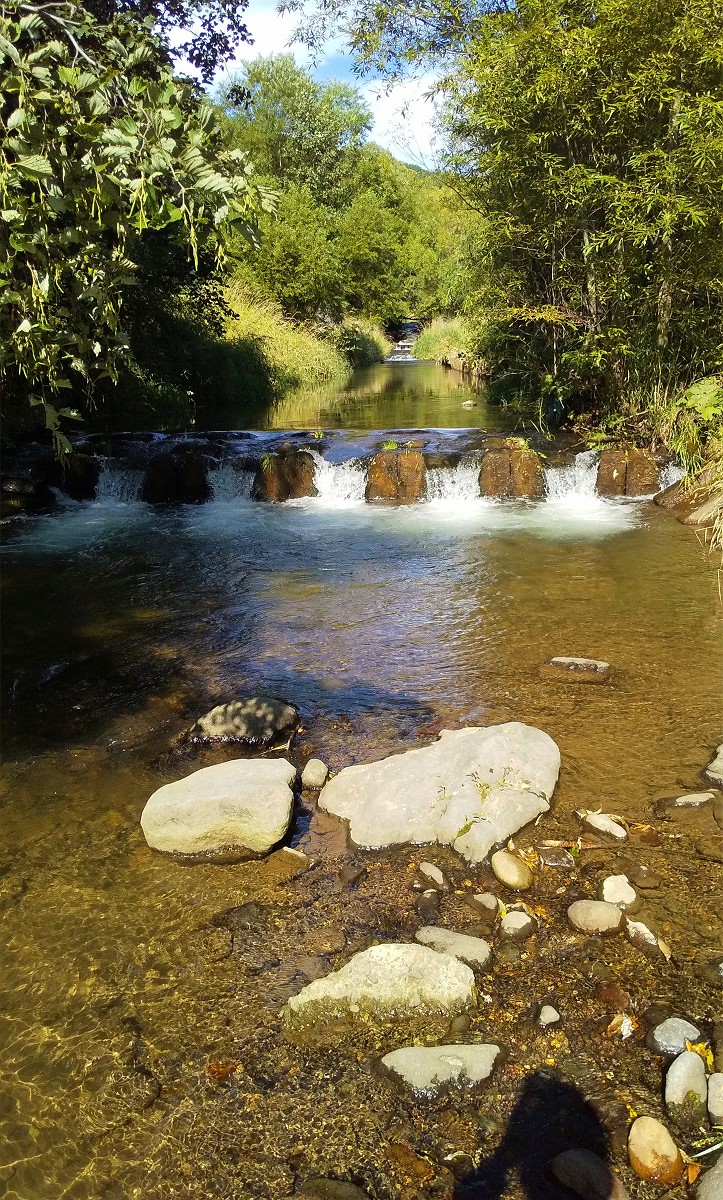 次に右から流れ込む支流を攻めるも流れが速く、スペースも狭いため厳しい釣りを強いられます。それでも写真のポイントで25センチほどの魚が掛かりましたが、食いが浅くバラしてしまいました。