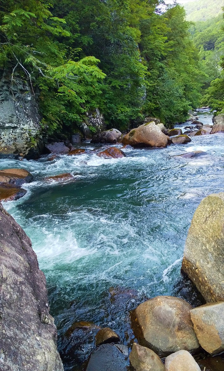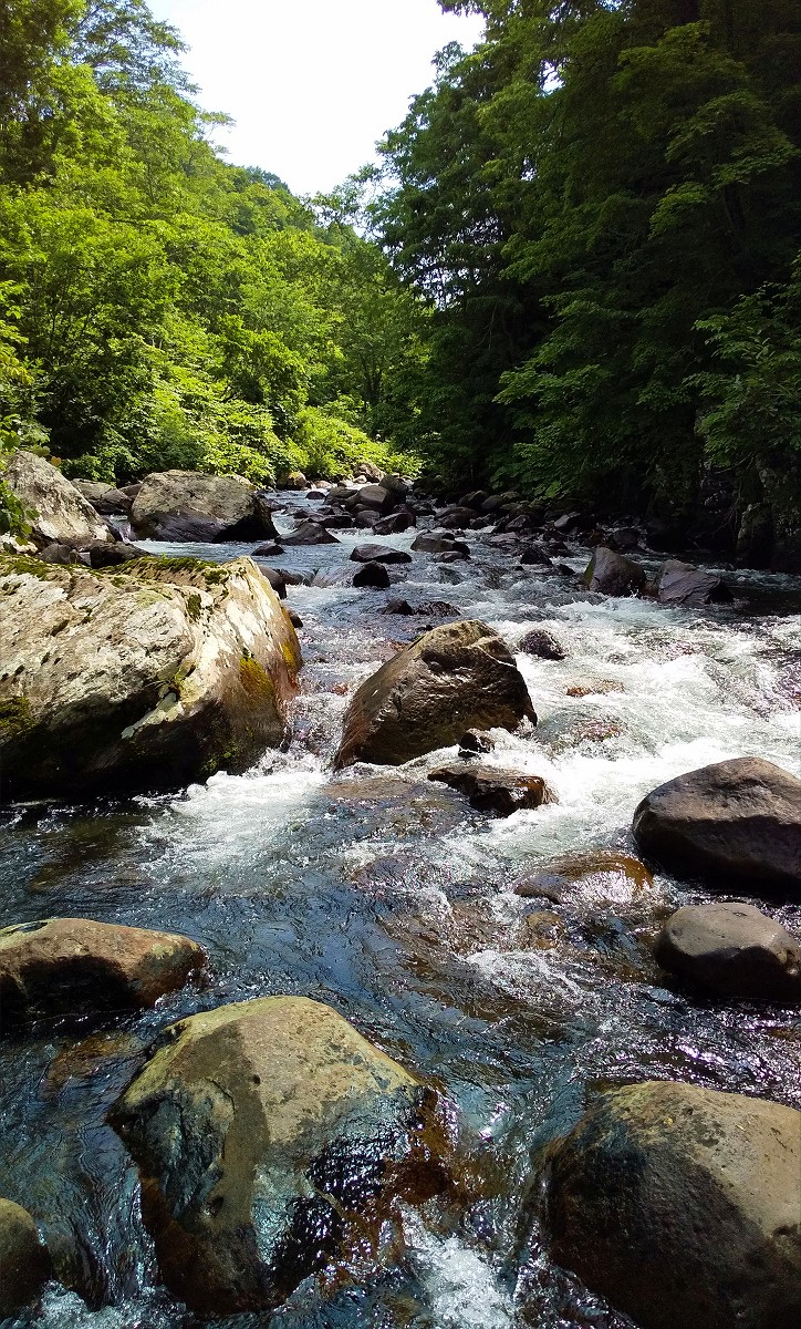 今日は京極町を流れるペーペナイ川で釣りをしてきました。この川の下流域は人工物が多いものの穏やかな流れですが、上流域はご覧の通り荒々しい渓相です。