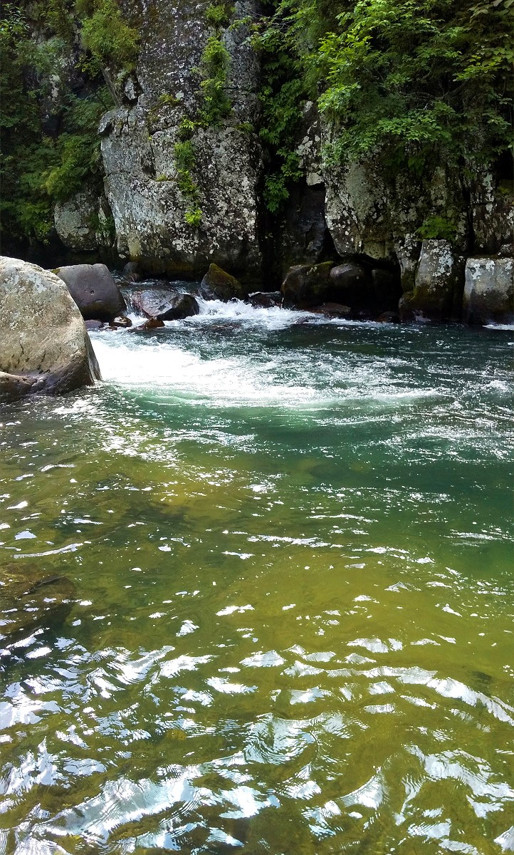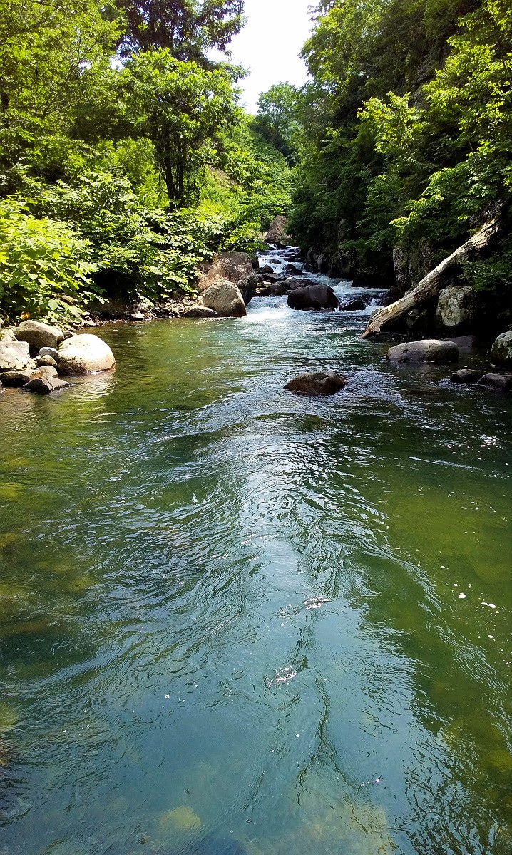 遡行が厳しいため一歩一歩神経を使いながら慎重に歩いていくと、早くも大きな深場がありました。ここで仕掛けを投入すると