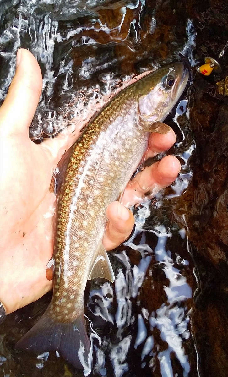 24センチの良型ヤマメがヒット。イワナ中心の河川かと思っていましたが、ヤマメも生息しているようですね。