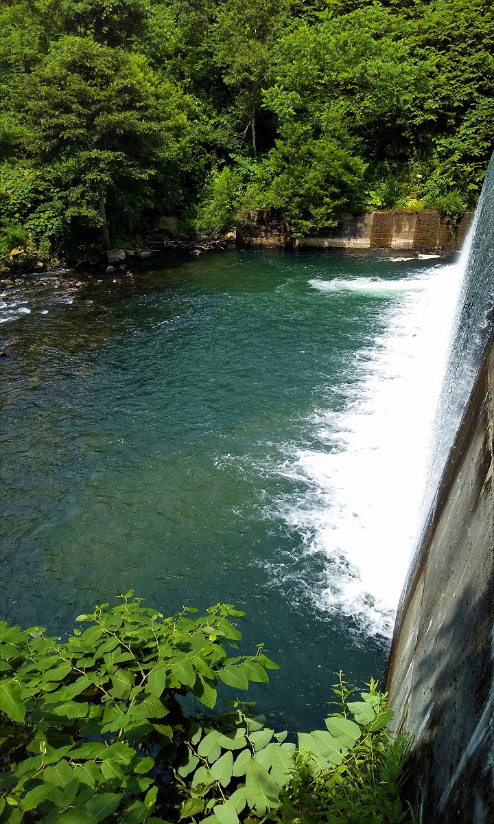 そして目星を付けていた巨大砂防ダムに到着。かなり大きな深場になっているため大物を狙い仕掛けを投入すると、再び良型ヤマメがヒットしたものの足元でバラしてしまいました。その後は小さなイワナ数匹しか釣れず、期待したほどの釣果はありませんでした。やはり大き過ぎる深場は攻略が難しいですね。
