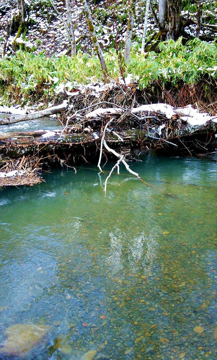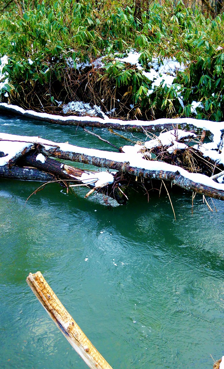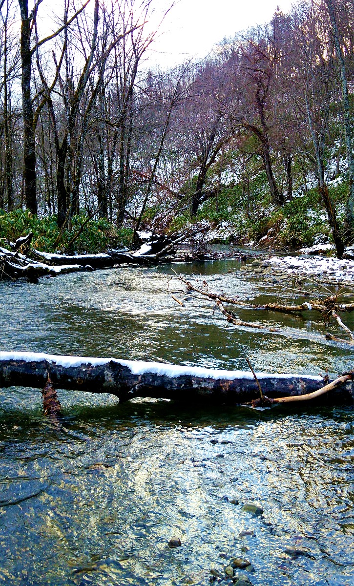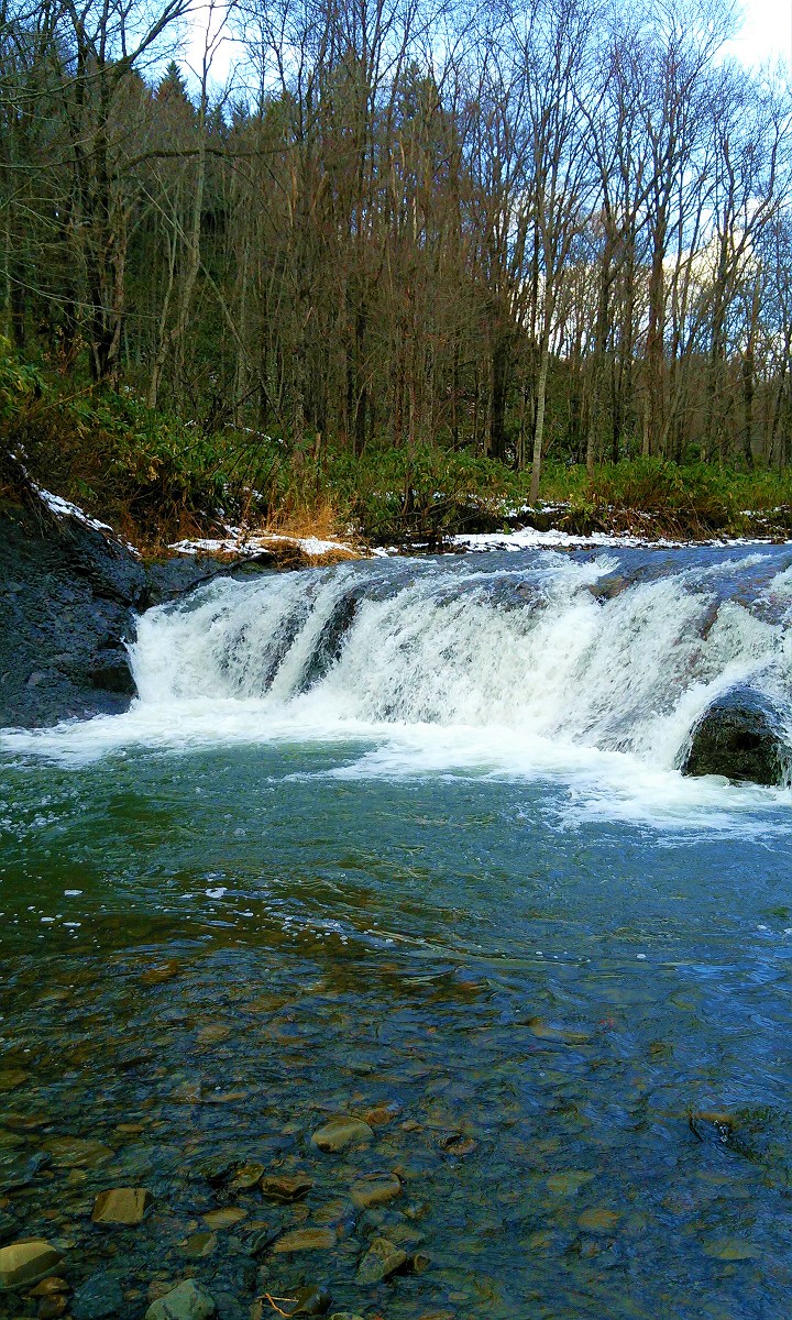 それでも寒さに耐えつつ釣り下っていくと、写真の深場で15センチほどのヤマメがルアーを追ってきました。食わせる事はできませんでしたが魚の生息を確認し、やる気が出てきました。
