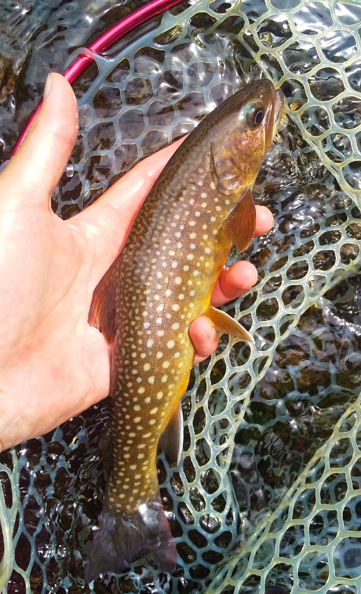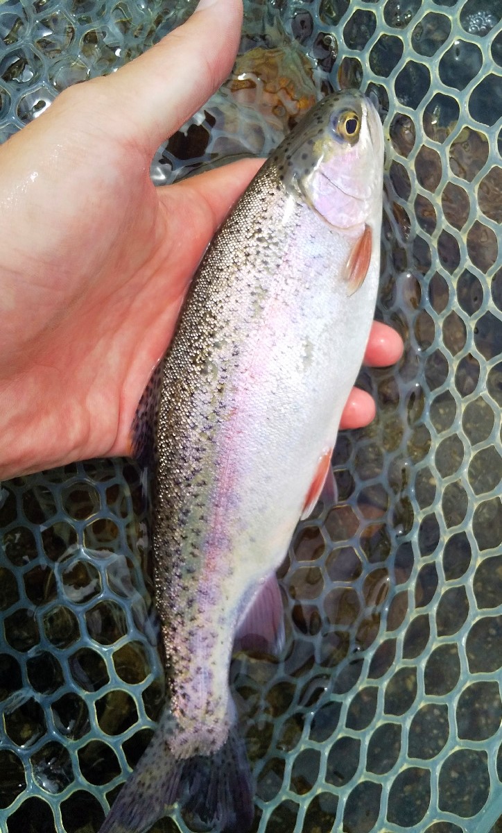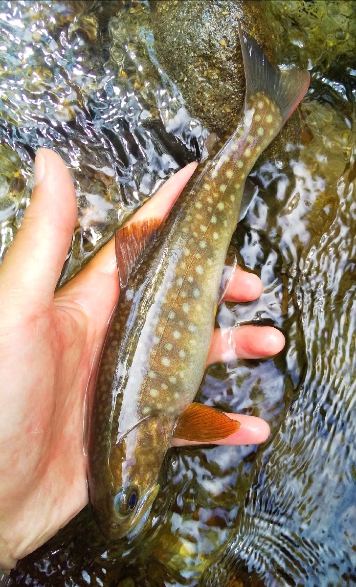 何故か27センチのニジマスがヒット。完全なイワナ河川での異常事態に驚きを隠せません。