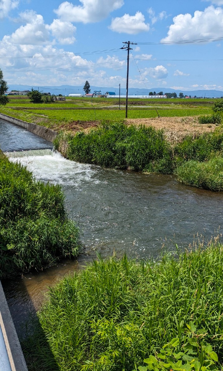 まず目に付いたのは用水路の流れ込みです。この大量の水は忠別川からの導水と思われ、倉沼川よりクリアな水質ですがノーヒット。このような流れ込みが多数ある影響で、倉沼川は流域面積以上の水量となっているようです。