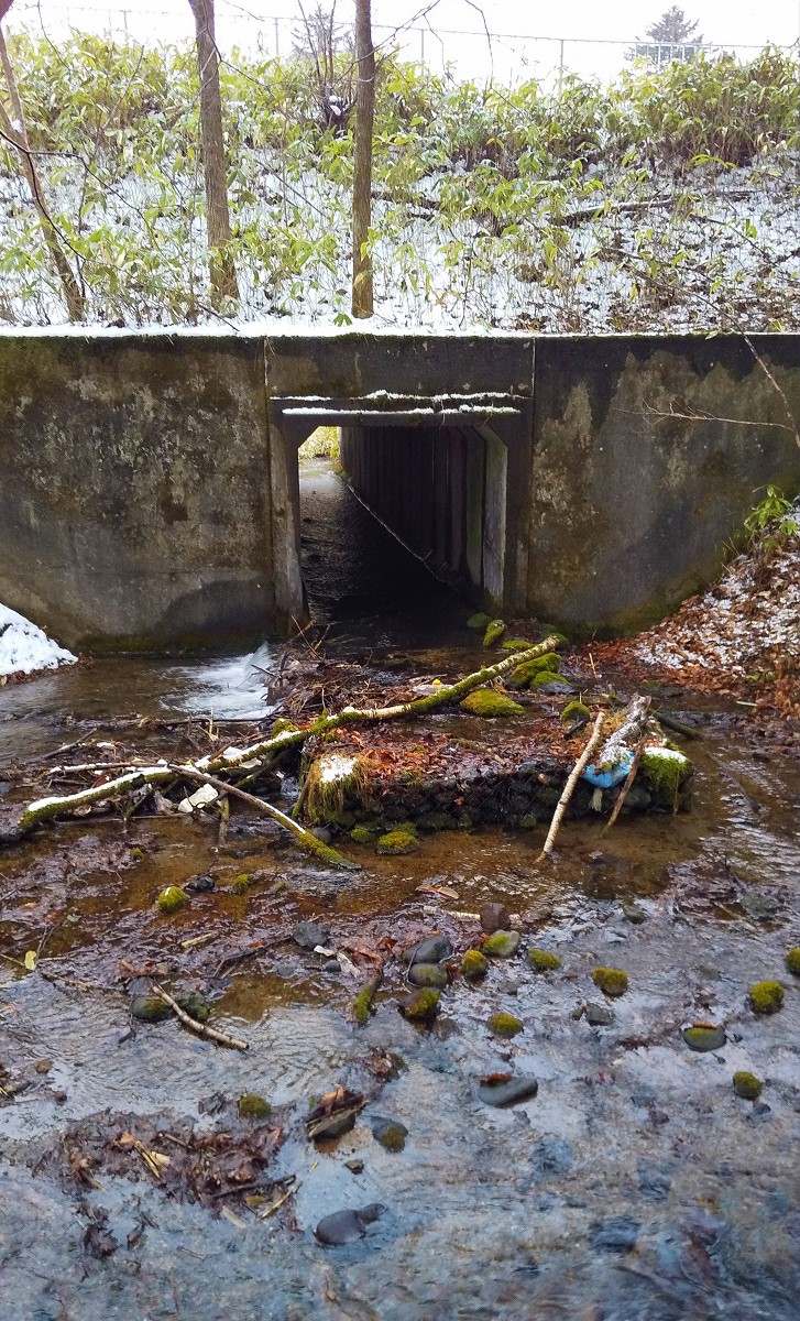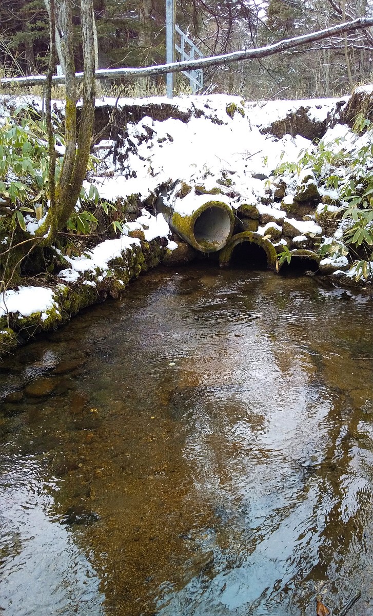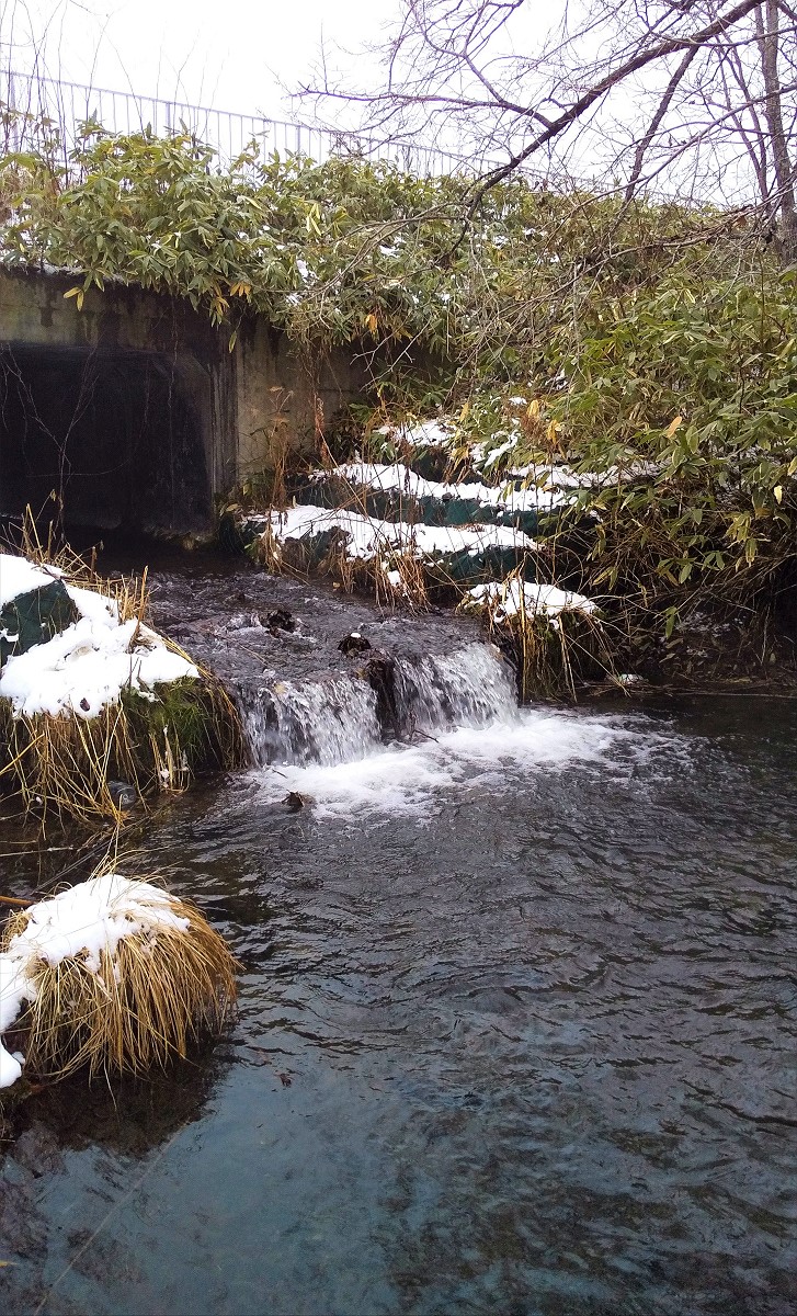 土管の上流は全体的に浅く、T字路下流同様ポイントがありません。もっと上流に行けばニジマスの繁殖場所となるような深場があるのかもしれませんが、今日は早めに引き返して隣の勇払川本流を見てみる事にしました。
