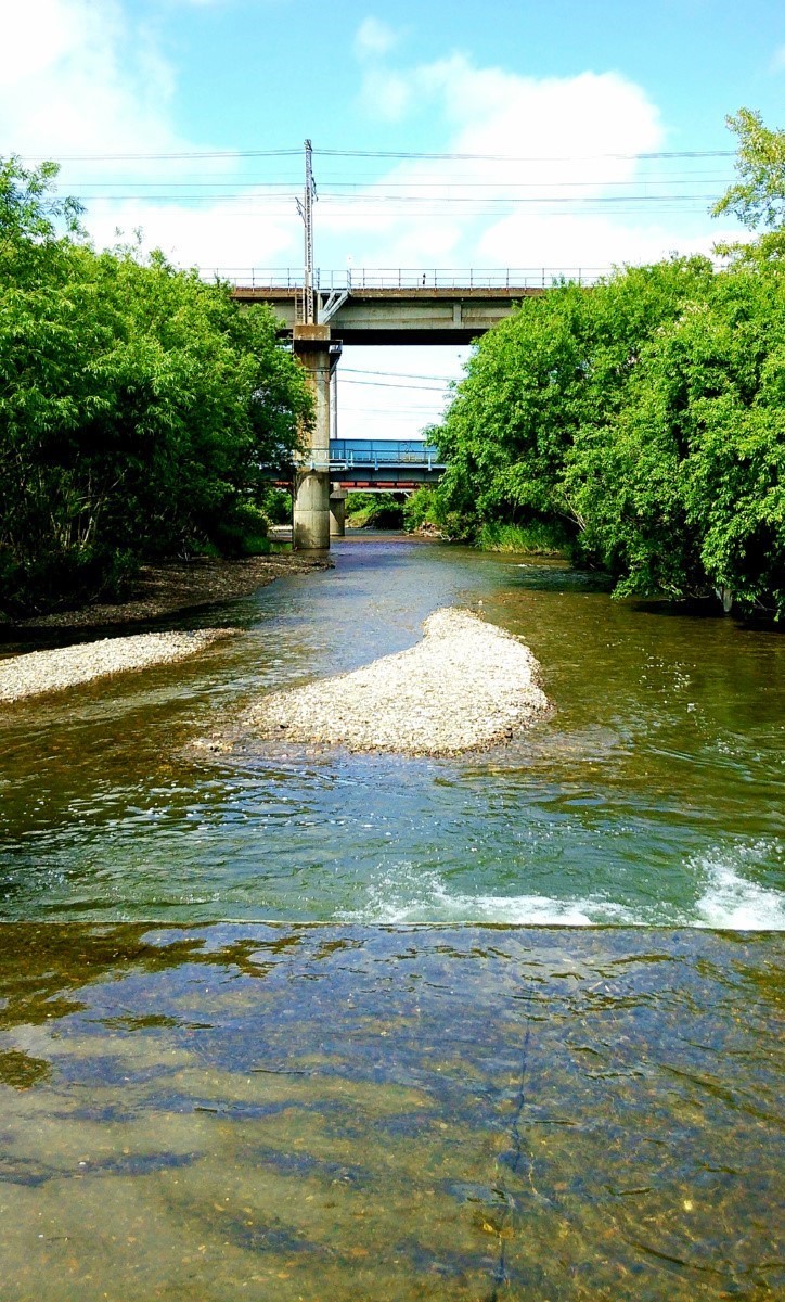 今日は札幌市白石区を流れる厚別川で釣りをしてきました。入釣地点は以前から気になっていたJRの高架下です。下流に千歳線と函館本線が見えますね。
