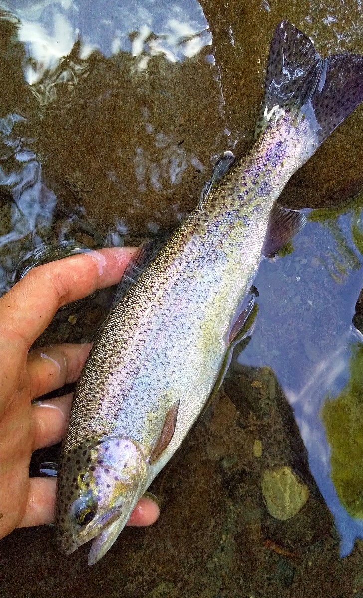 23センチのニジマスがヒット。農村地帯でも十分楽しめますね。ただ今回は大物を狙って早めに上流へ移動する事にしました。