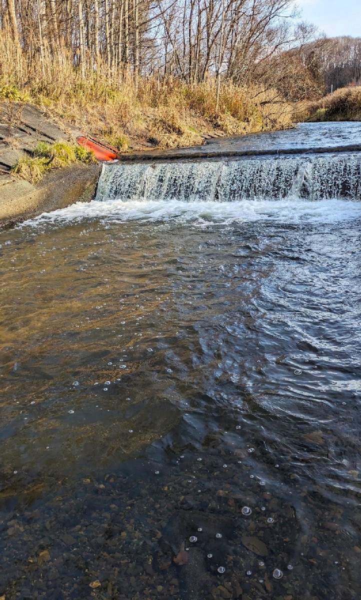 今日は千歳市を流れる嶮淵川で釣りをしてきました。一見すると雰囲気は良いのですが、川底は全てコンクリートブロックで固められており、魚が身を隠せる深場は見つかりません。
