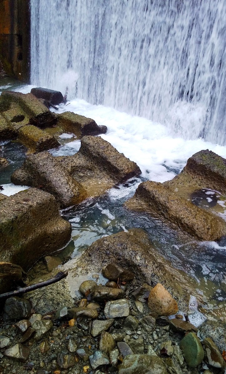 左股川には大規模な人工物が多数ありますが、スリットや魚道が整備されており環境は悪くありません。ただし上流部の砕石所から出る砂塵で川底は白っぽいですね。それでも盤渓川より水質は良く釣り人も多いため、目立つポイントは厳しいかと思いきや
