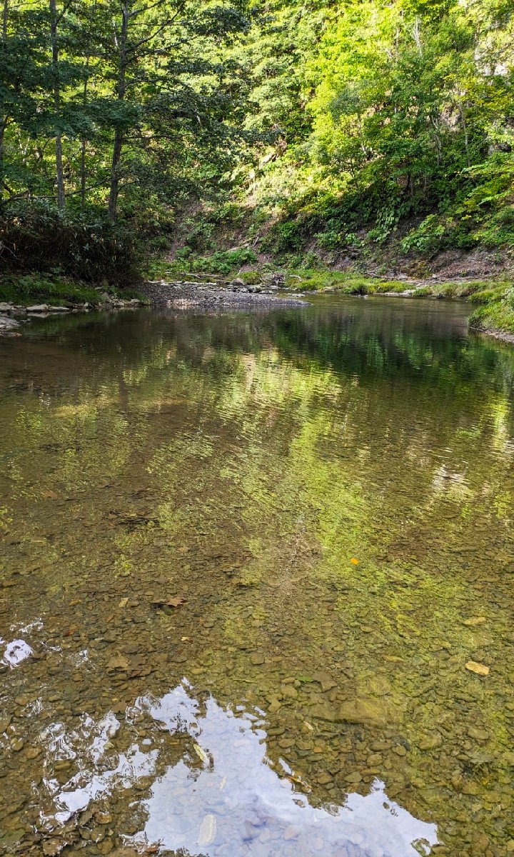 今日は芦別市を流れる幌子芦別川で釣りをしてきました。幌子芦別川は未開通だった美唄富良野線沿いを流れているため今まで下流域しか調査できませんでしたが、2024年に開通し上流域への入渓が可能になったので来てみました。しかし期待に反して全く魚影を確認できません。