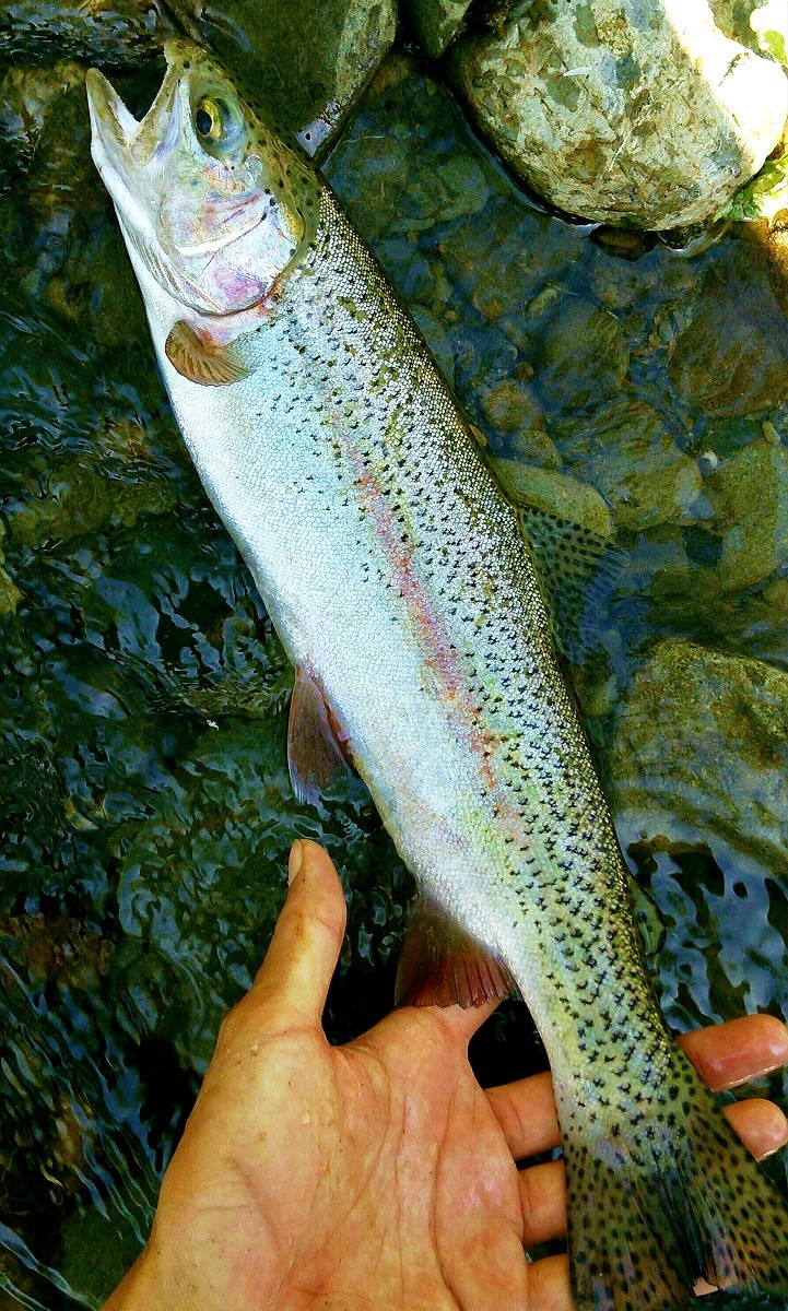40センチの巨大ウグイでした。渓流魚を期待した分少し残念ですが、太さも重さも半端ではありません。これはこれで滅多にお目にかかれない大物ですね。