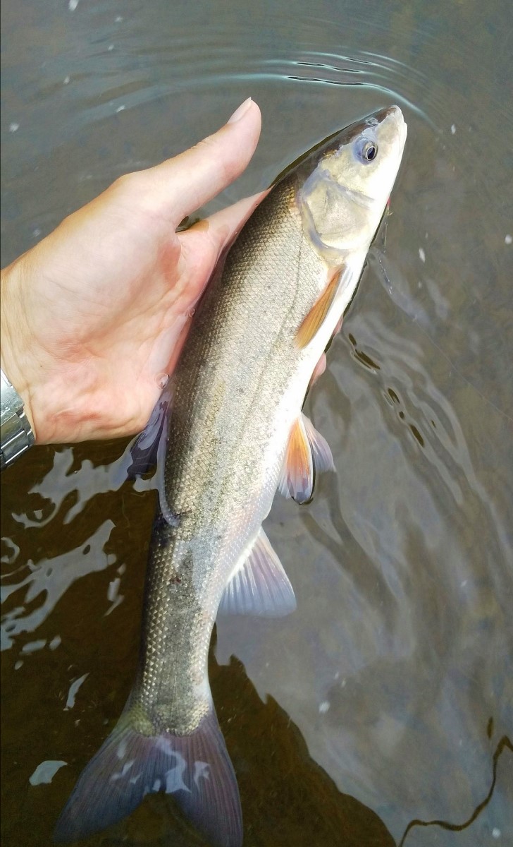 釣れるのはウグイです。ただし市街地周辺より魚影は薄く良型の気配もありません。諦めて帰ろうと思いましたが、30投目くらいで