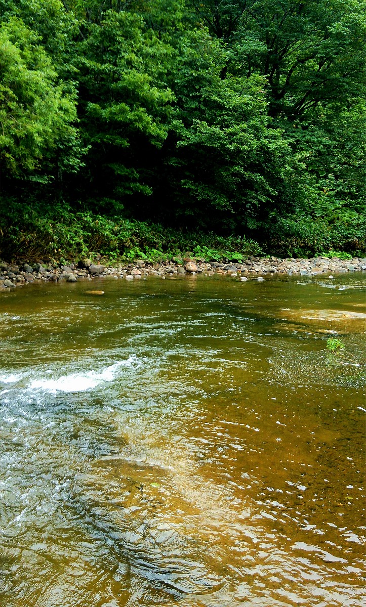 今日は石狩市を流れる浜益川で釣りをしてきました。降り続いた雨の影響が心配でしたが、岩盤が多い川底のためか濁りや増水は感じませんね。