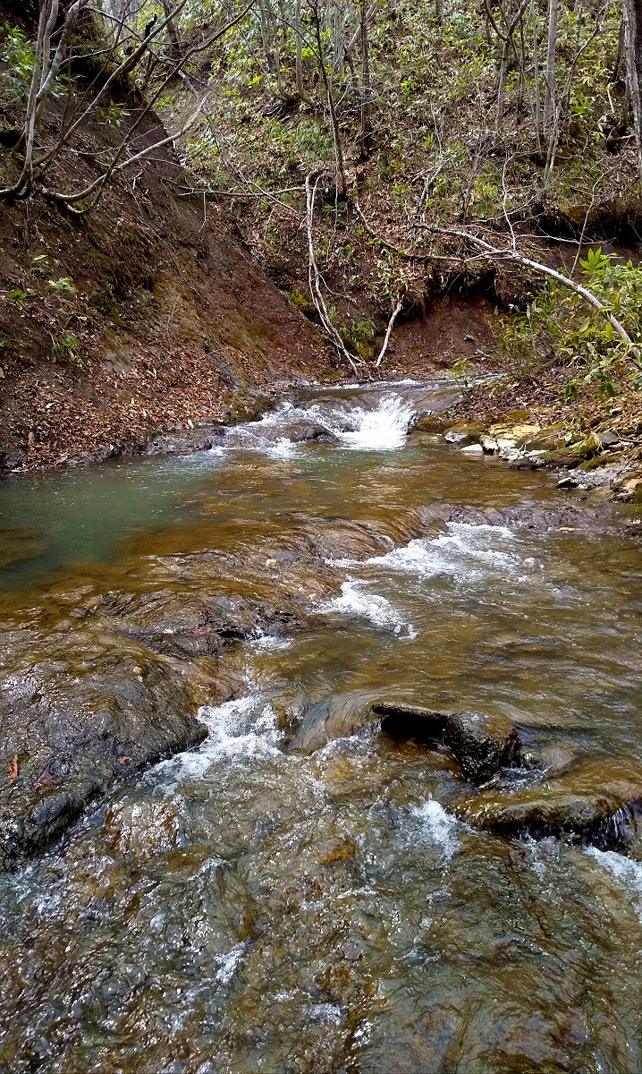 急斜面を何とか降りて入渓すると、川底は岩盤が多くサラサラ流れており深場は多くありません。若干の硫黄臭も気になりますが仕掛けを投入すると、