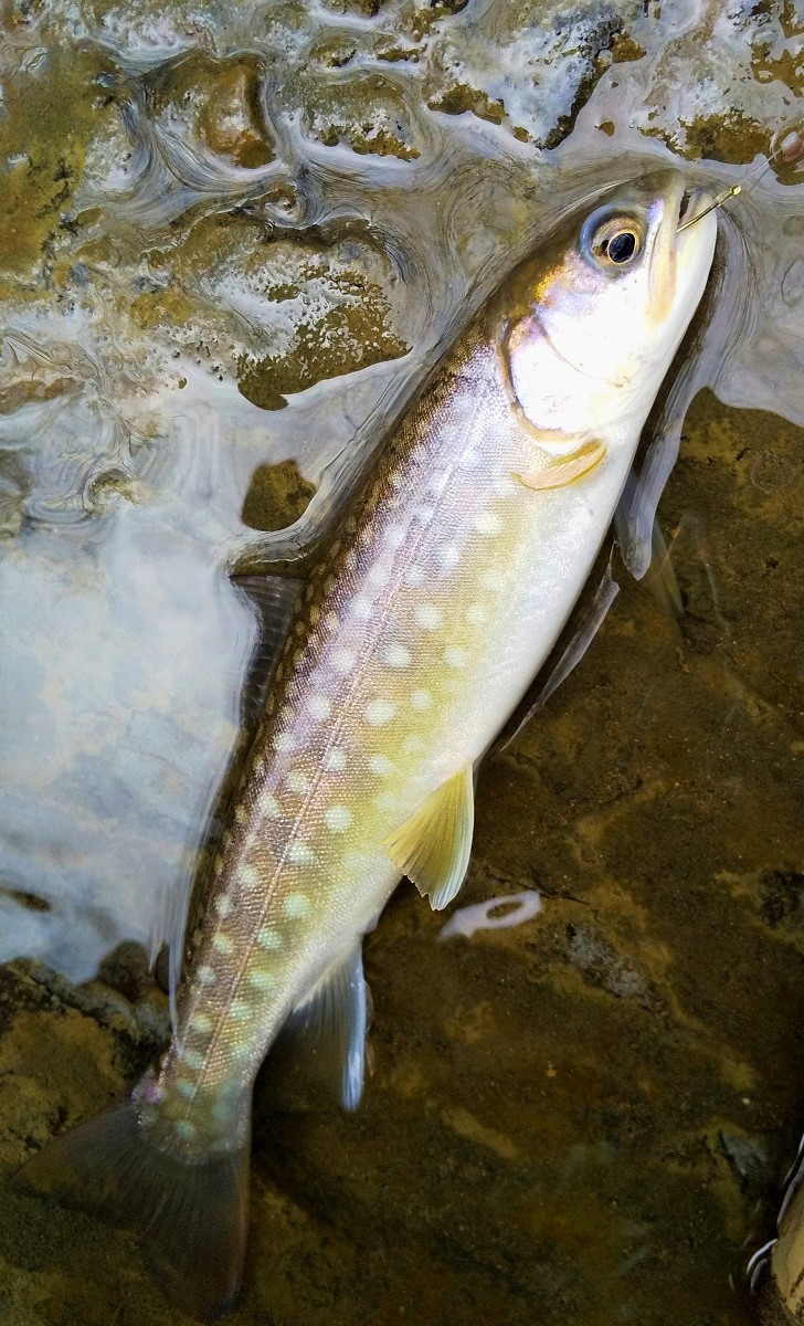 小さなイワナがヒット。志幌加別川水系では初めてのイワナです。