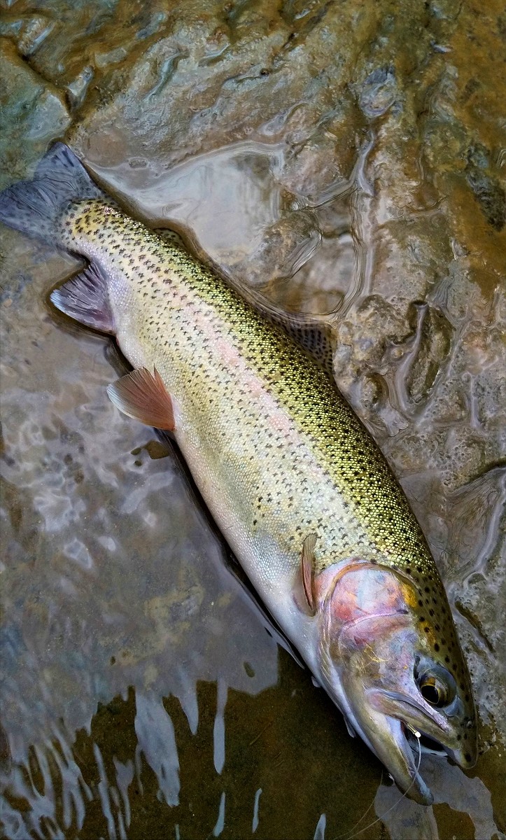 先程のポイントより上流は滝が連続しておりアタリもなかったので、今日はここで帰宅しました。尺オーバーのニジマスが釣れた滝が魚止めなのかもしれませんね。また機会があれば訪れてみようと思います。魚は全てリリースしました。