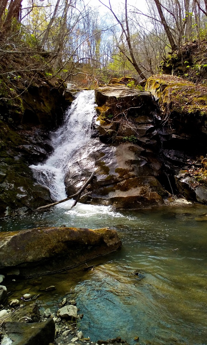 その後さらに釣り上がり、ここで写真の滝を発見。これは絶対魚が溜まると思い仕掛けを投入すると、予想通り今日一番のアタリがありました。掛かっていたのは
