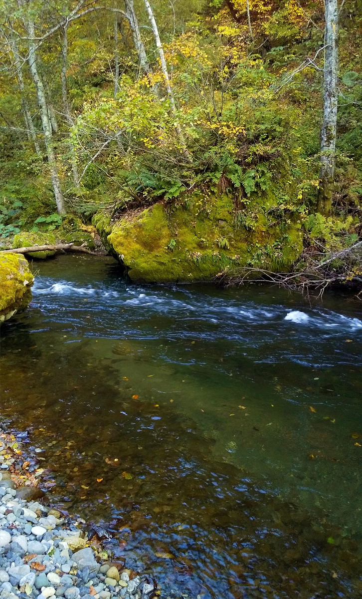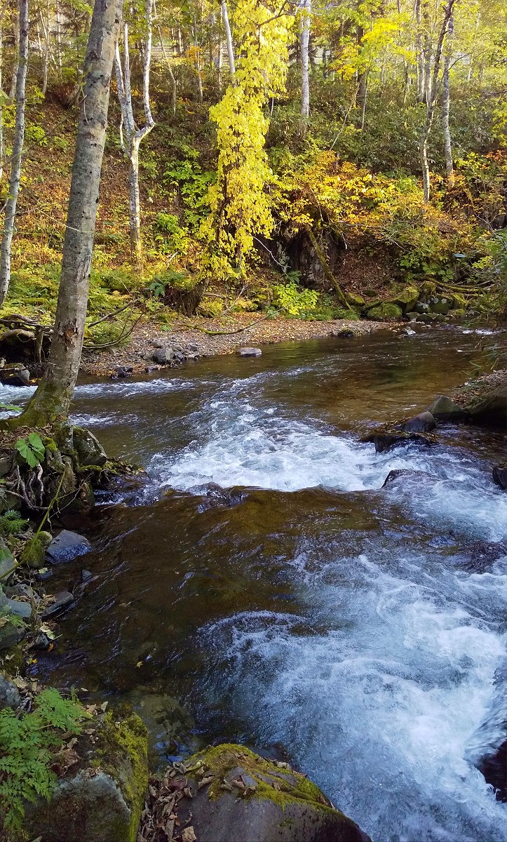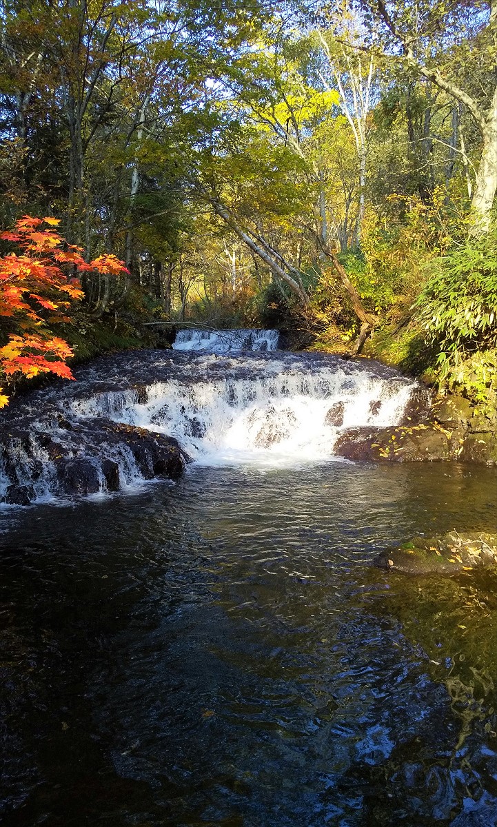 今日は上川町を流れる留辺志部川で釣りをしてきました。ちなみに前回訪れた時は直線的な速い流れでポイントが少ない上に魚影は皆無、おまけに川底が滑るため遡行も困難という最悪の印象でした。とりあえず遡行が楽な上流域を訪れてみると見事な滝を発見。早速仕掛けを投入すると
