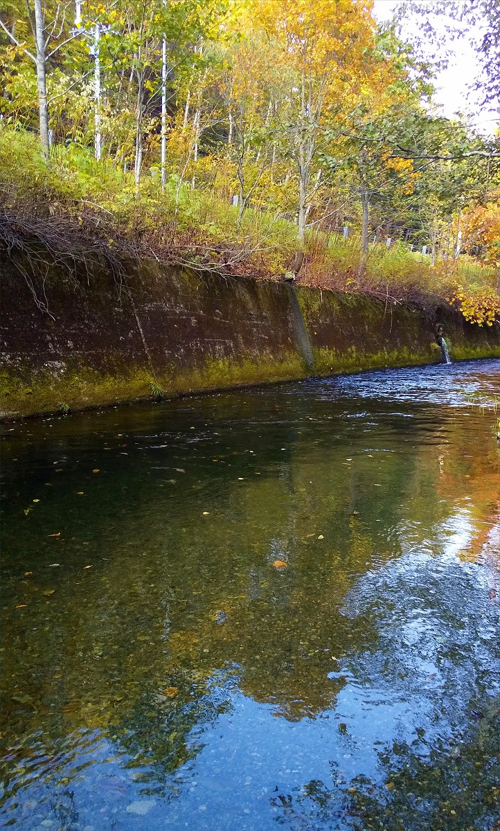 そして最後に辿り着いたのが護岸際のポイント。留辺志部川としては珍しく巨大な深場が形成されており、水深も3メートルほどありそうですね。ここで一縷の望みを託して仕掛けを沈めると、待ちに待った鋭いアタリが。掛かっていたのは