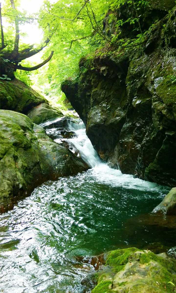 釣り上がっていくと荒々しい渓相が出迎えてくれます。ただ下流に人工の滝があるので期待はしていませんでしたが、滝壺にルアーを流すと良いアタリが。上がってきたのは