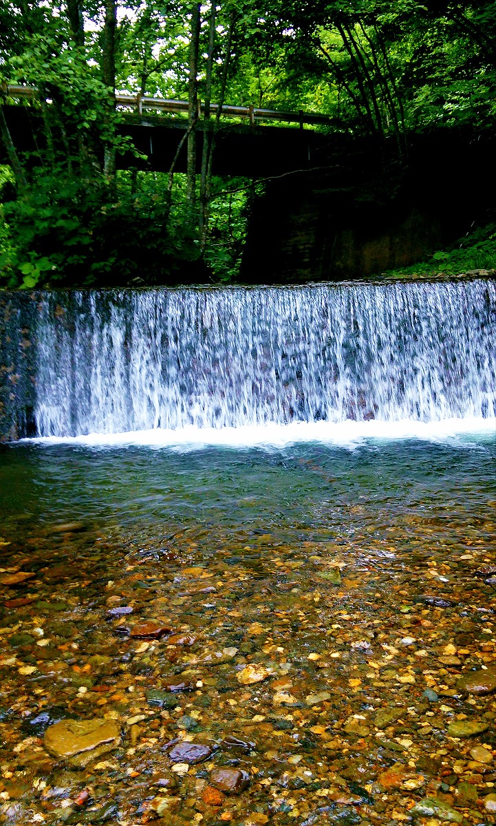 まずは入釣ポイント付近にある人工の滝を攻めると、何やら小魚が追ってきますがアタリはありません。しかし魚は生息しているみたいですね。