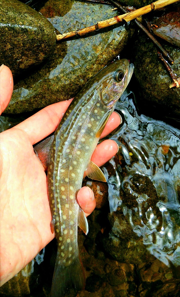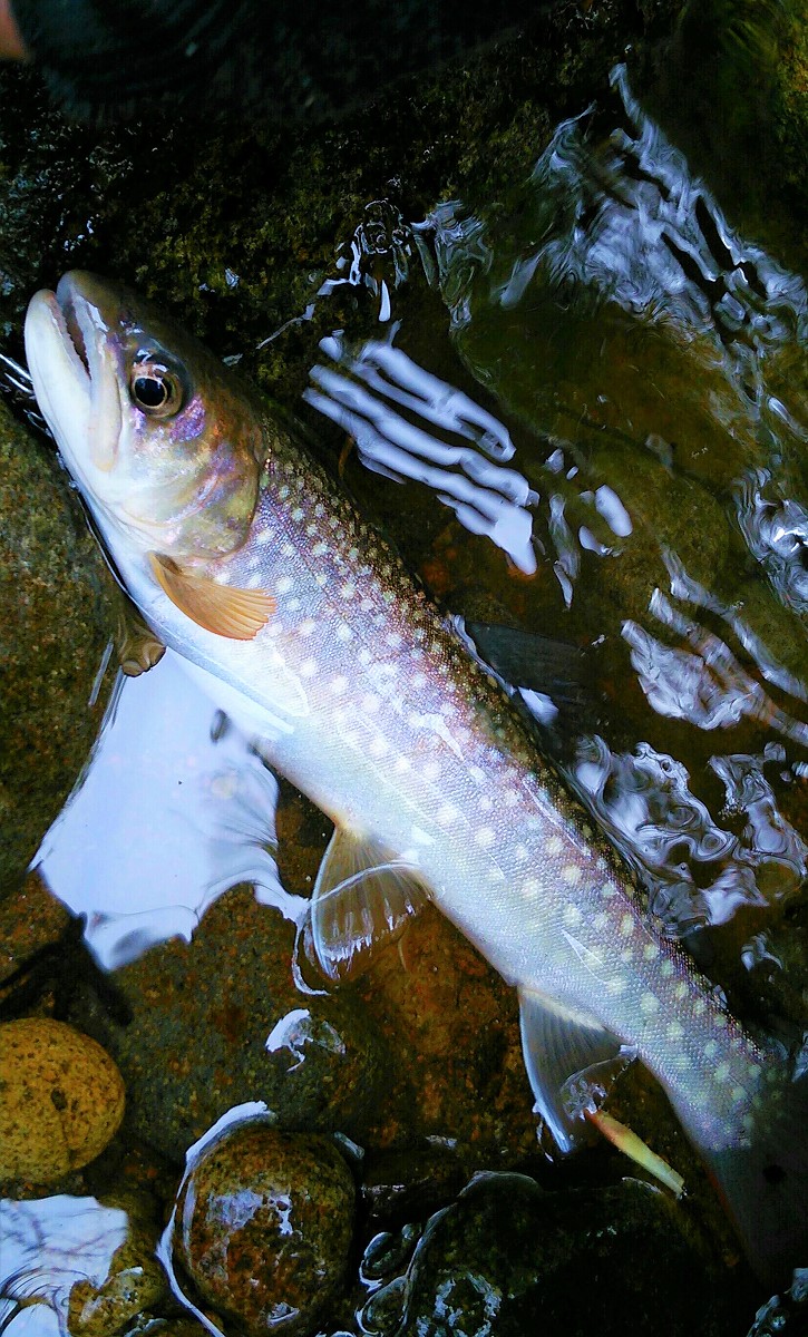24センチのイワナがヒット。このイワナに満足し今日はここで帰宅しました。深場が少ないので大物を狙うのは難しそうですが、魚影はそこそこあるようですね。また機会があれば訪れてみようと思います。魚は全てリリースしました。