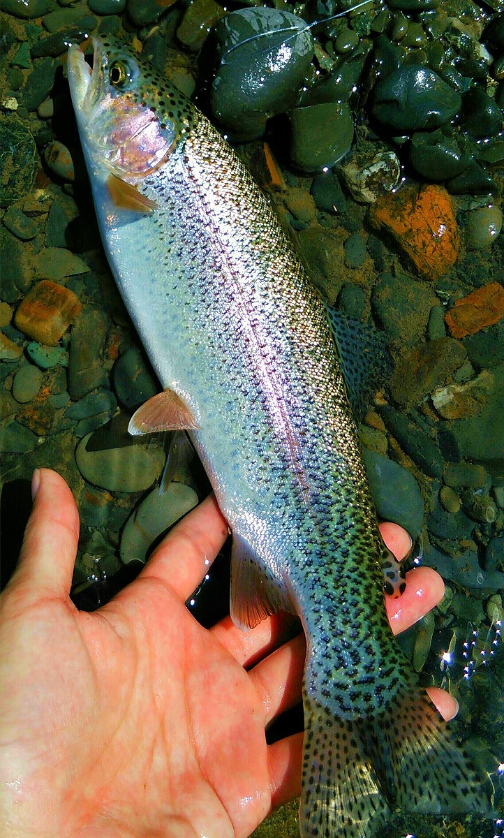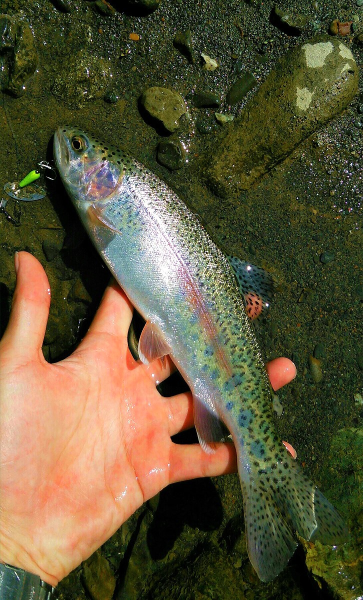 幸先良く25センチのニジマスがヒット。2年前ウグイの入れ食いに苦しんだのが嘘のようです。