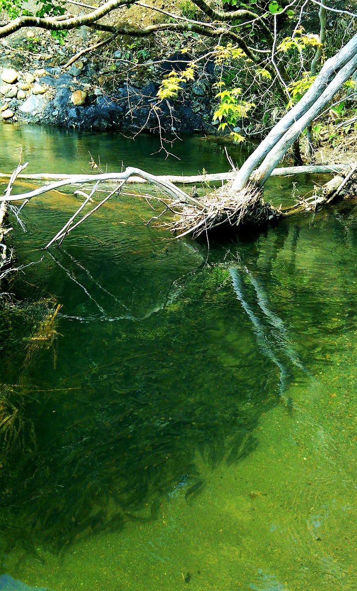 しかし油断するには早過ぎました。早々に渓流魚を釣り上げ良い気分で歩いていましたが、奥に見えてきた深場で凄まじい光景を目の当たりにしました。