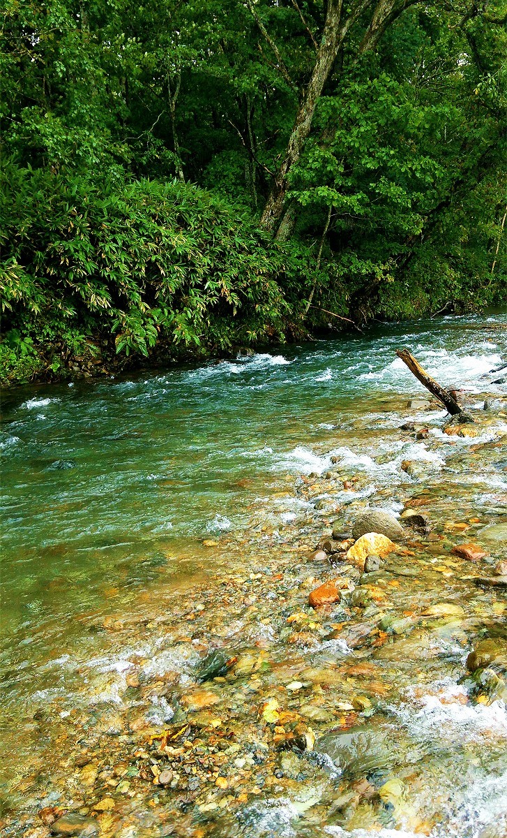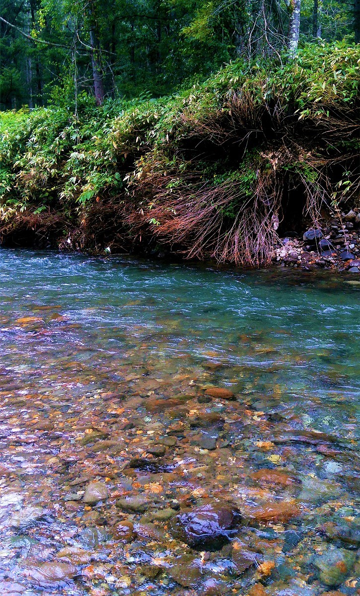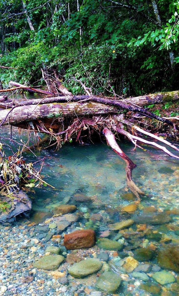 釣り上がっていくと倒木によるポイントが目に付きました。しかし小さなアタリはあるもののフッキングしません。やはり美笛川はクリアな水質に加えて釣り人が多過ぎるので、魚はかなりスレている印象です。