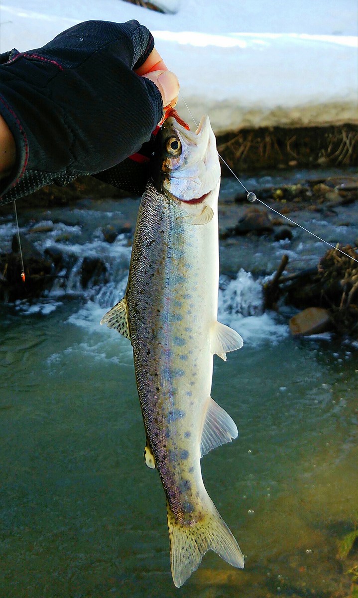 23センチのニジマスでした。やはり遡上を妨げる人工物がないので本流から遡上してきたという事でしょう。