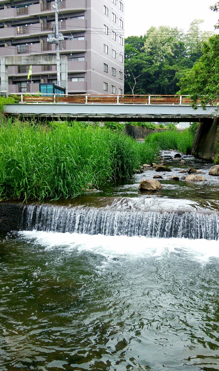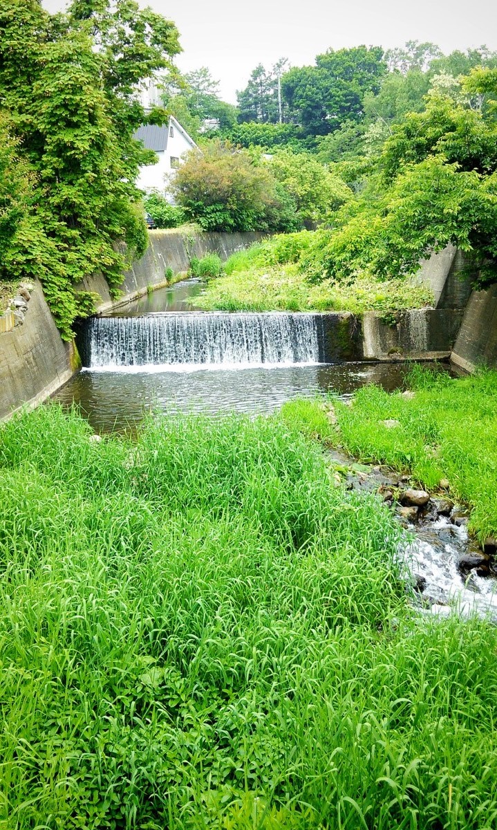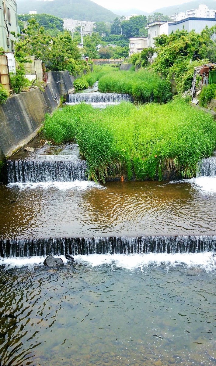 今日は小樽市を流れる銭函川で釣りをしてきました。上の写真は銭函駅の近くで撮ったのですが、ご覧の通り人工の滝が連続する超急流河川です。ただこの辺りは流石に滝が多過ぎるので、もう少し上流を見てみましょう。