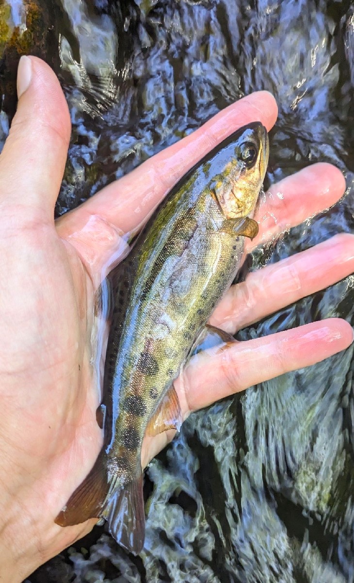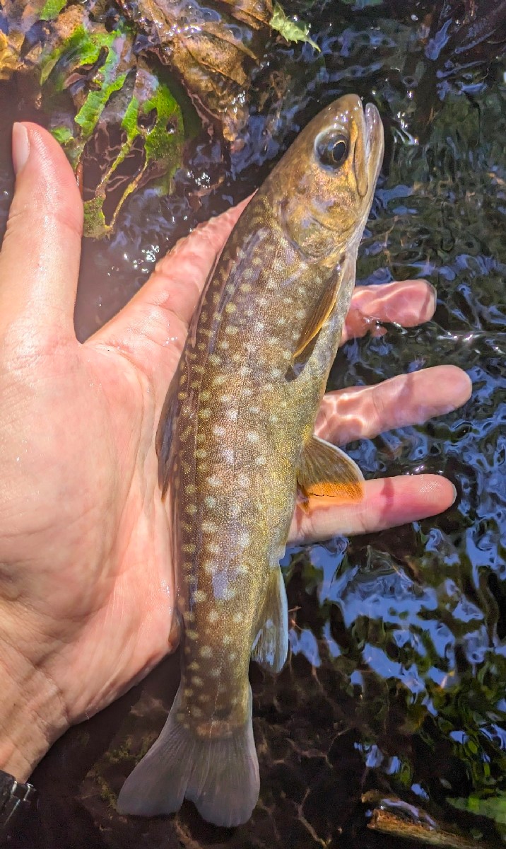 そのまま釣り上がると人工物による深場を発見。ここで奇跡の尺イワナを回収しようと思ったら、