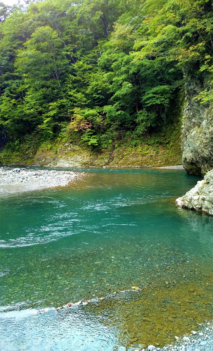 蛇行と深場が連続する上流域の渓相は言葉では称えきれないほど素晴らしいです。ただこんな場所にも釣り人の足跡がある事には驚きましたが、早速釣り上がっていきましょう。