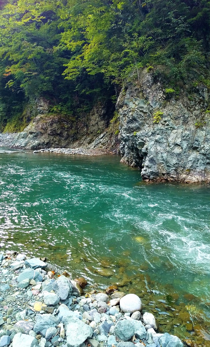 河原に横たわる巨大な倒木からは、時に全てを飲み込む激流と化す額平川の猛威が感じられます。