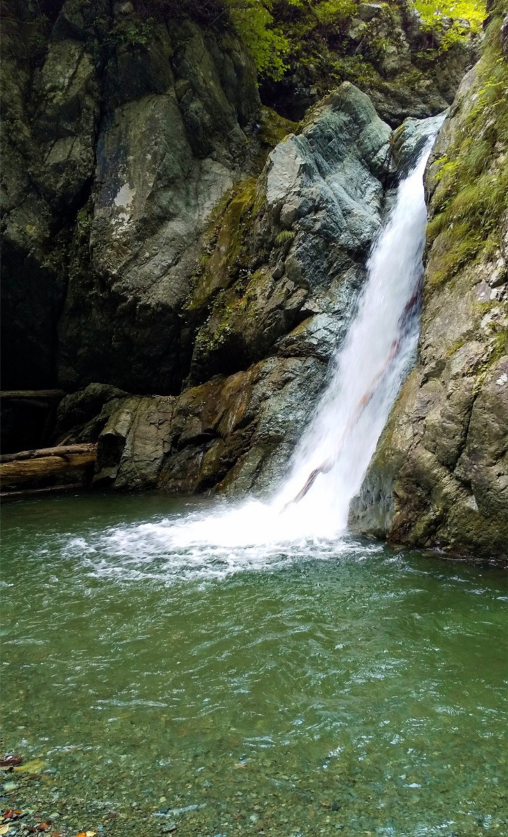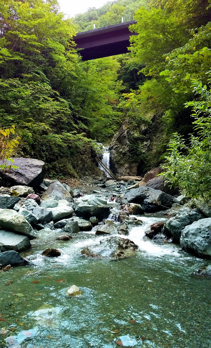 本流は思いのほか攻められている印象なので、ここで思いきって支流を1キロほど遡行してみると荒々しい渓相の奥に滝が見えてきました。