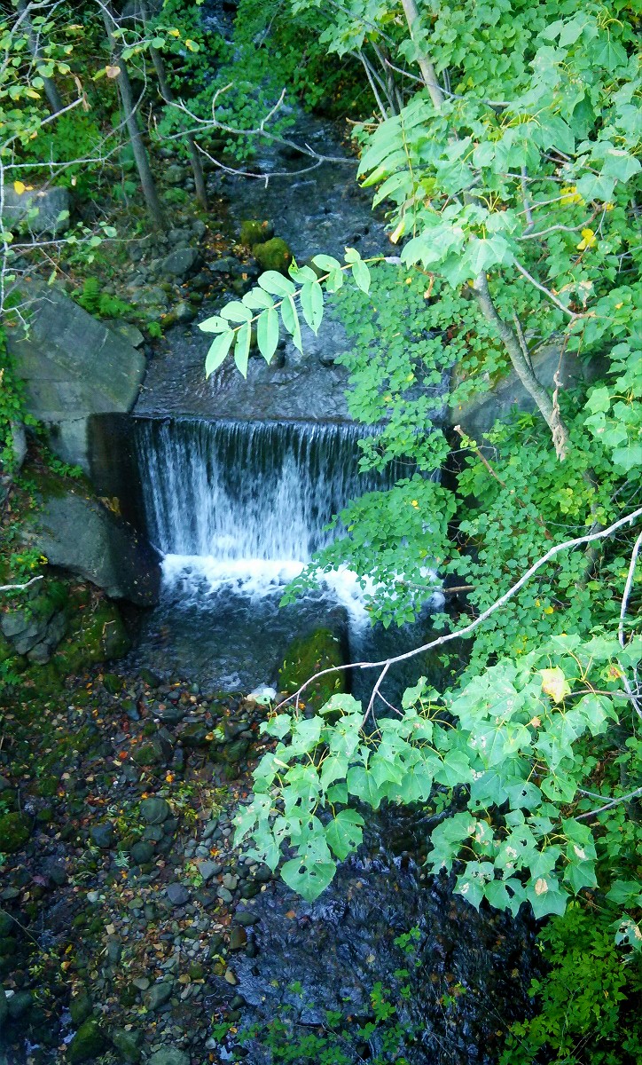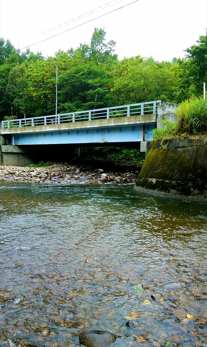 今日は美唄市を流れる美唄川で釣りをしてきました。写真は水色の柵が印象的な滝見橋から見た渓相です。橋の下に広がるビッグポイントで釣りがしたいのですが、美唄川は崖に囲まれており入渓ポイントが限られるため、まずは滝見橋の500メートルほど下流から入渓してみましょう。