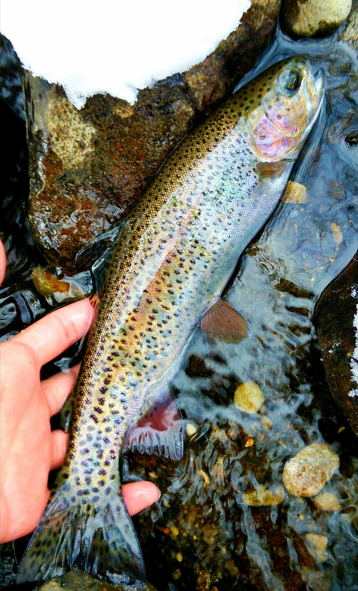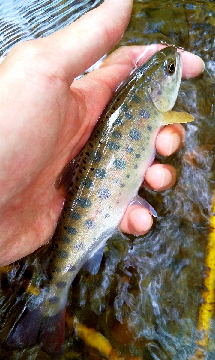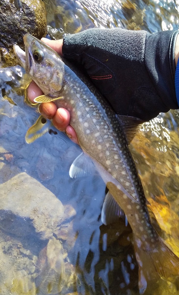 24センチの幅広ヤマメでした。体高があるのでサイズ以上に大物に見えますね。このヤマメに満足し今日はここで帰宅しました。また機会があれば訪れてみようと思います。魚は全てリリースしました。
