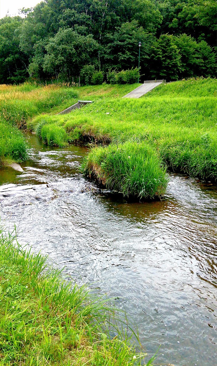 今日は札幌市南区を流れる山鼻川で釣りをしてきました。写真は山鼻川と豊平川の合流地点です。ご覧の通り水質は豊平川より良いくらいですし、意外に水量もあります。それではここから釣り上がってみましょう。
