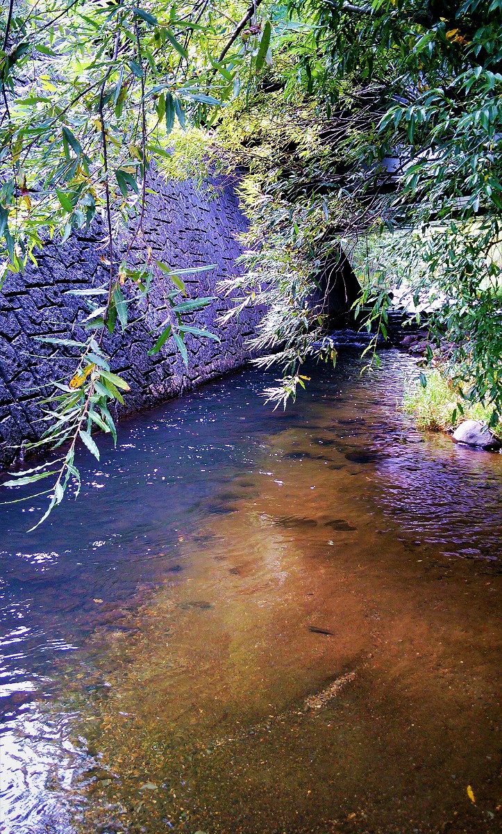 川底が自然の砂利になっています。ひょっとしたら魚がいるかもしれません。