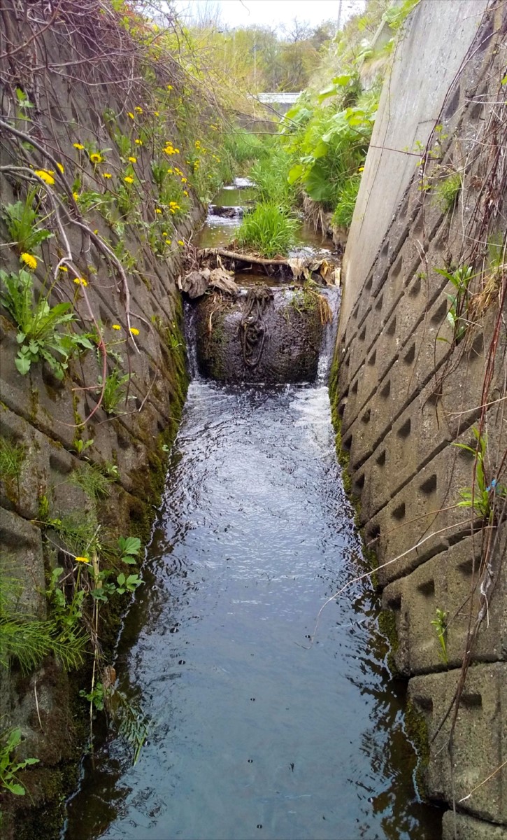 ちなみに滝の上流もコンクリート固めで酷い渓相です。次に下流域を攻める選択肢もありましたが、今日はここで見切りを付けてユカンボシ川に移動する事にしました。