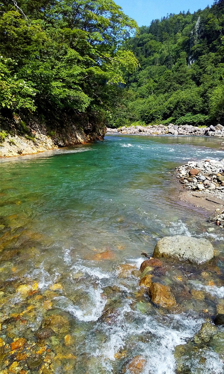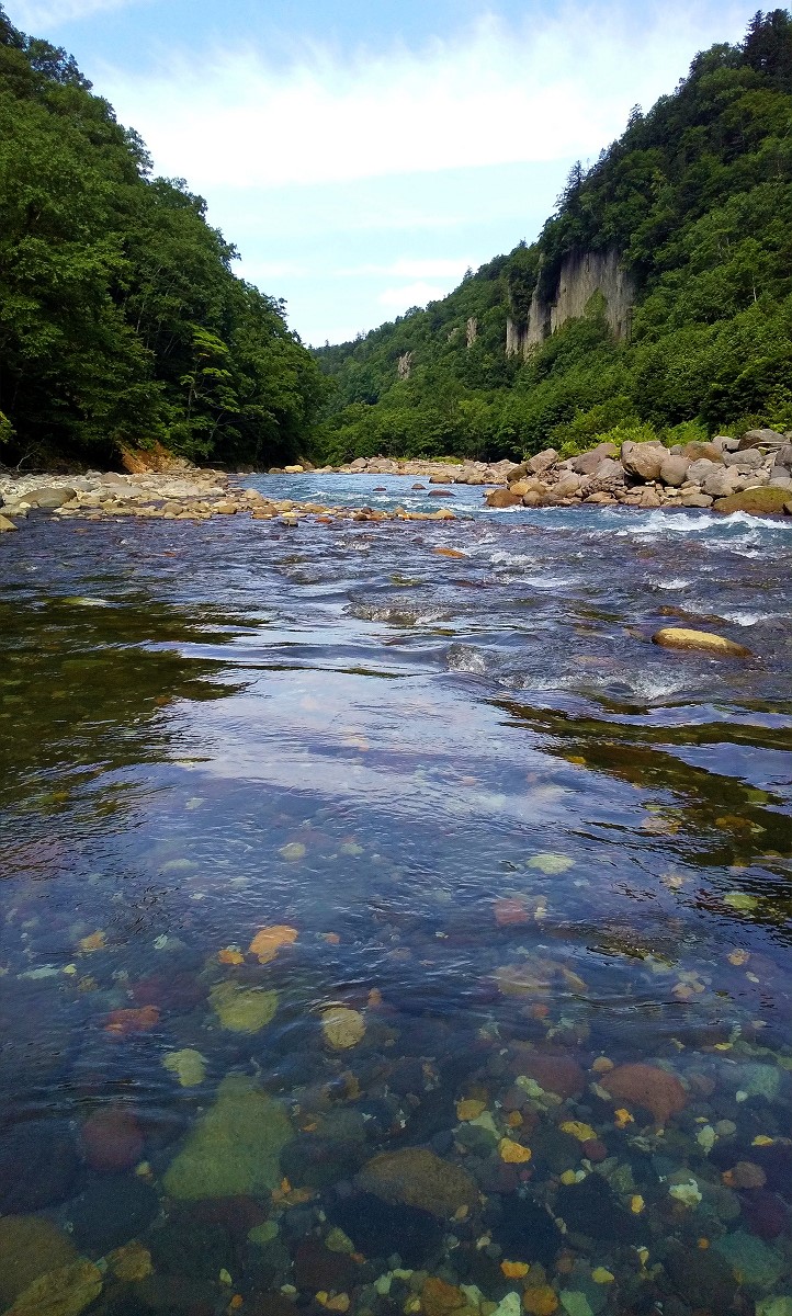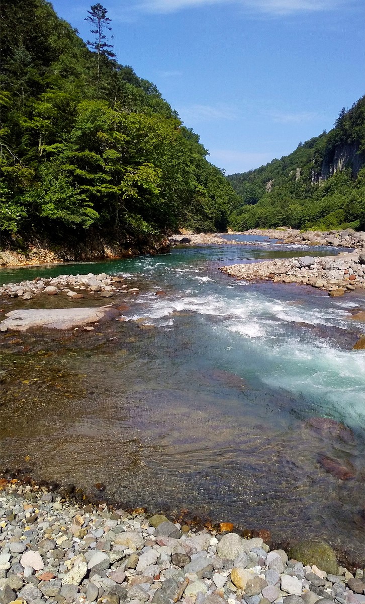 今日は東川町天人峡を流れる忠別川で釣りをしてきました。写真は忠別川とクワウンナイ川の合流地点です。この辺りは大雪山国立公園に位置しますが、釣り禁止という訳ではありません。ただし自然環境に影響を与えないよう、配慮ある行動が求められます。