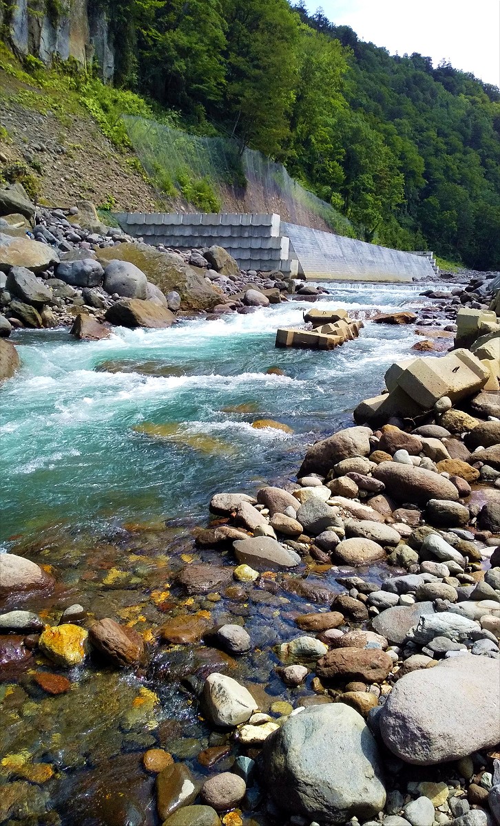 さらに下流に歩いていくと最近増設された人工物が目立ち、ポイントは多いもののアタリがなく今日はここで帰宅しました。渇水期でも遡行に難儀するほどの暴れ川であるため、正直治水工事は仕方ないかと思います。ただここは自然保護を謳った国立公園ですから、魚類にも優しい治水工事が行われる事を願って止みません。また機会があれば訪れてみようと思います。魚は全てリリースしました。