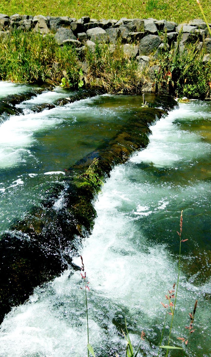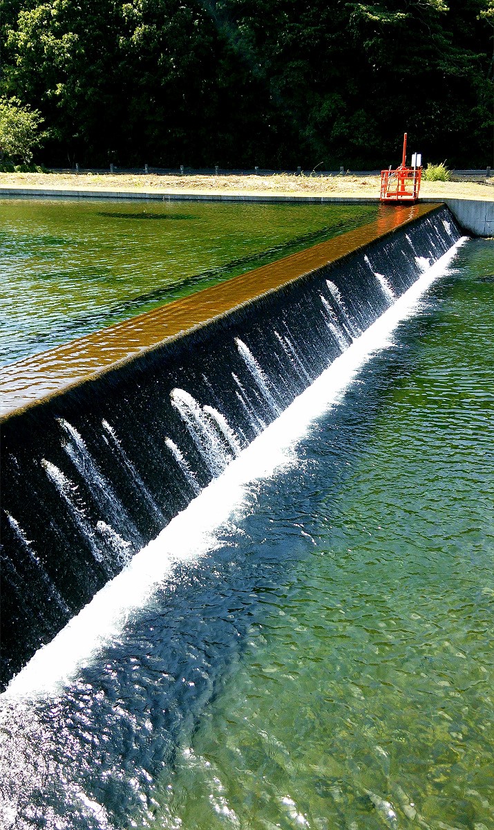 上流は人工の滝と急流が延々と続いています。しかしいくら釣り上がってもアタリが全くないので、もう釣りと言うより沢登りです。しかも川底はヌメヌメして滑りやすく、護岸も高いので川から出る事ができません。これほど遡行が辛い川は初めてです。それでも滝をよじ登っていくと、