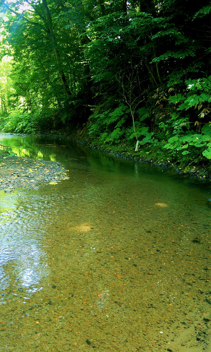 真新しいサケの血痕を発見しました。もしかしたら今朝の物かもしれません。とりあえず今日は帰宅して、明日サケの食いが立つ早朝に再び訪れてみましょう。