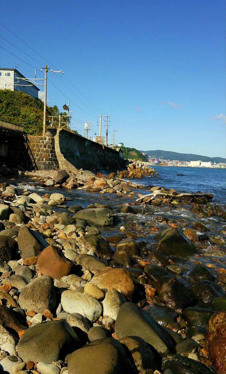 川を見る限りサケの姿は見当たりませんが、果たして朝里川に釣りが楽しめるほどサケの遡上や回遊はあるのでしょうか。何か手掛かりはないかと海岸を散策していると、